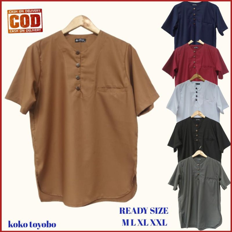 Baju Koko Pakistan Toyobo Pria Lengan Pendek, kurta polos modern casual terbaru