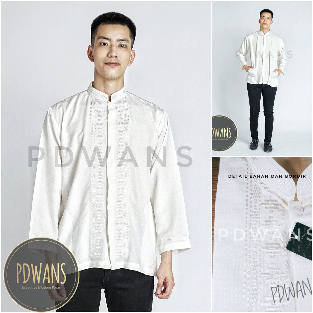 Baju Koko Muslim Dewasa Lengan Panjang Kemeja Koko Bordir Putih Tulang PDWANS - RDPJG02