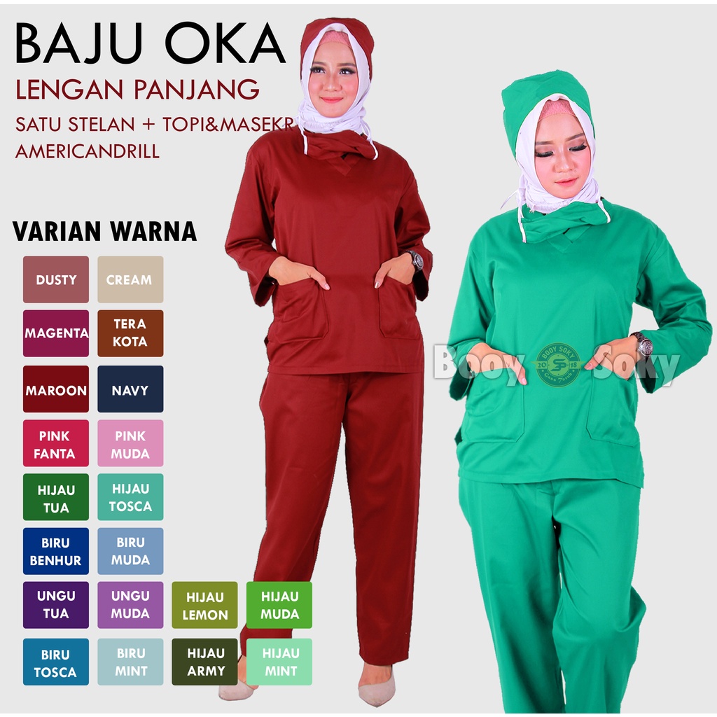 Baju Jaga Ok Oka Perawat Medis Lengan Panjang Dinas Kesehatan Malam | Baju Ok Murah Berkualitas American Drill | Set Scrub Dokter Kerah V