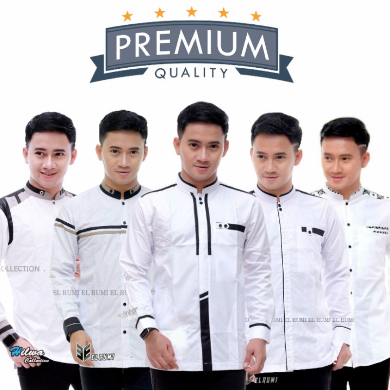 BAJU KOKO PRIA LENGAN PANJANG BAJU KOKO DEWASA PUTIH POLOS KOMBINASI BAJU MUSLIM HADROH TAQWA ELRUMI EL RUMI TOYOBO PREMIUM TERBARU
